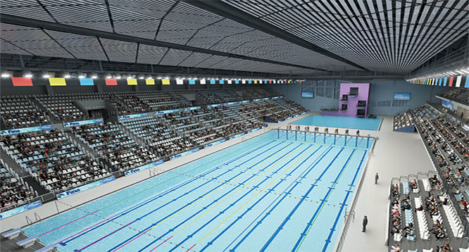 本项目是符合国际泳联AC-4 级标准的游泳馆,可举办欧洲游泳锦标赛及经FINA统一的世界游泳锦标赛、世界跳水锦标赛、世界水球锦标赛、世界花样游泳锦标赛等大型国际单项比赛。赛后游泳馆作为白俄罗斯国家游泳队、国家跳水队、国家花样游泳队、国家水球队、国家现代五项队日常训练场地,在非国家队训练时间段对社会开放。